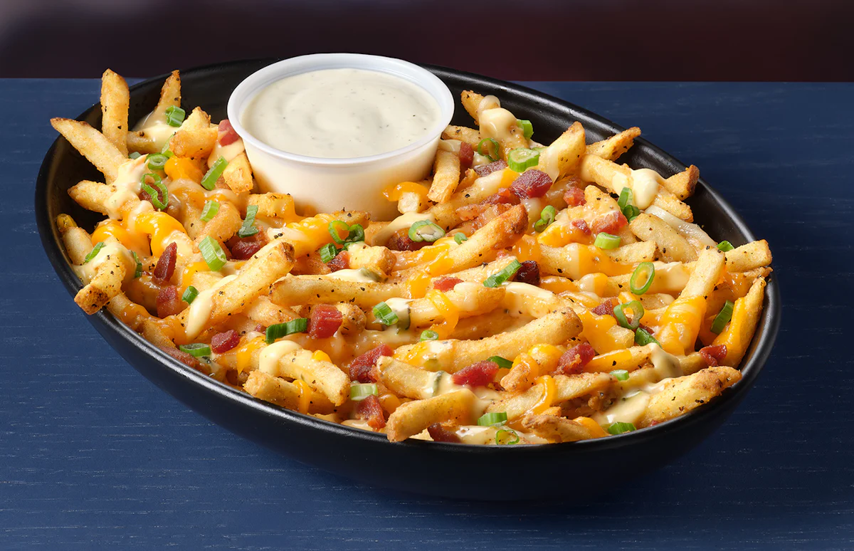 Crispy seasoned fries, queso, melted cheese, bacon & green onions. Dip ‘em in ranch. Add Chili for $1.