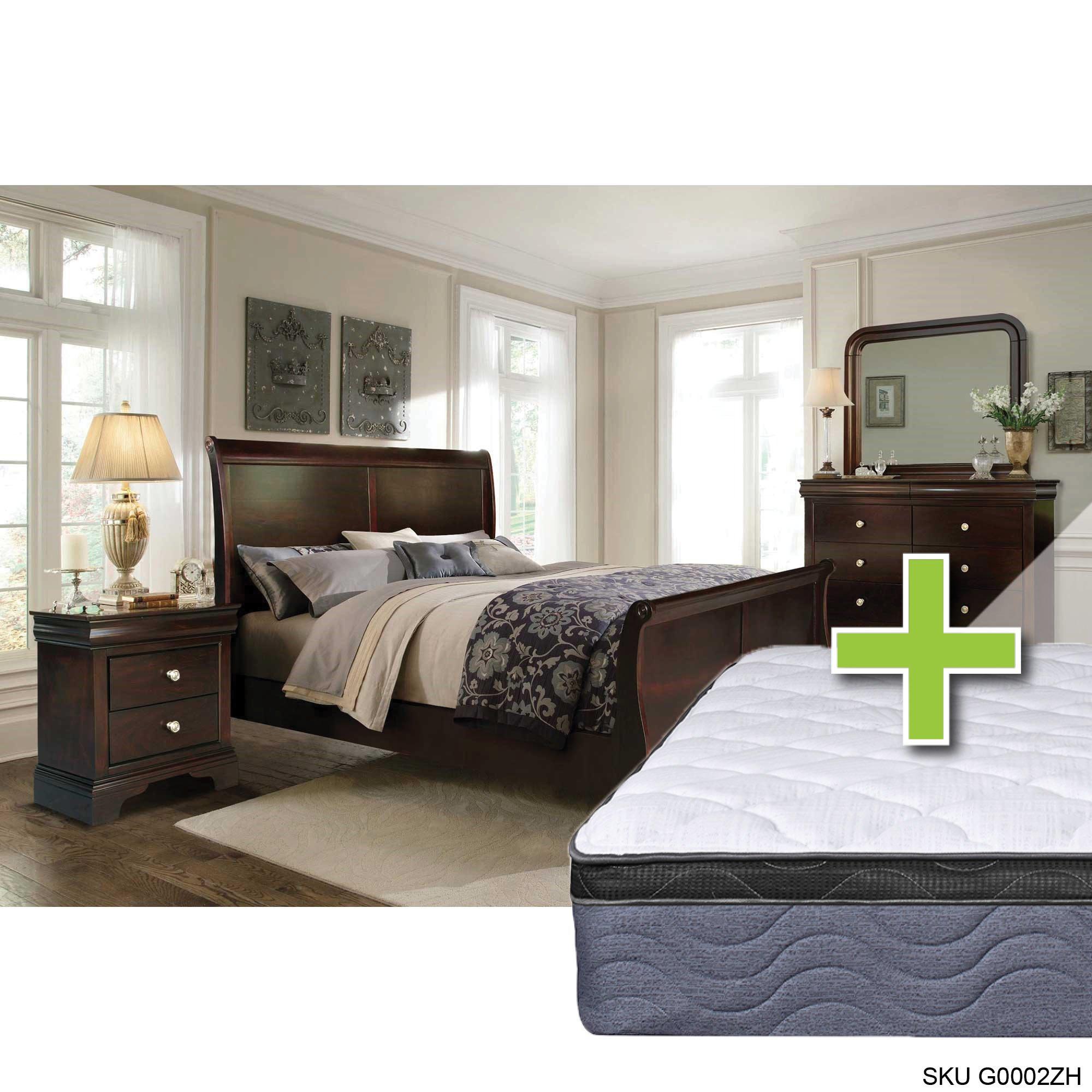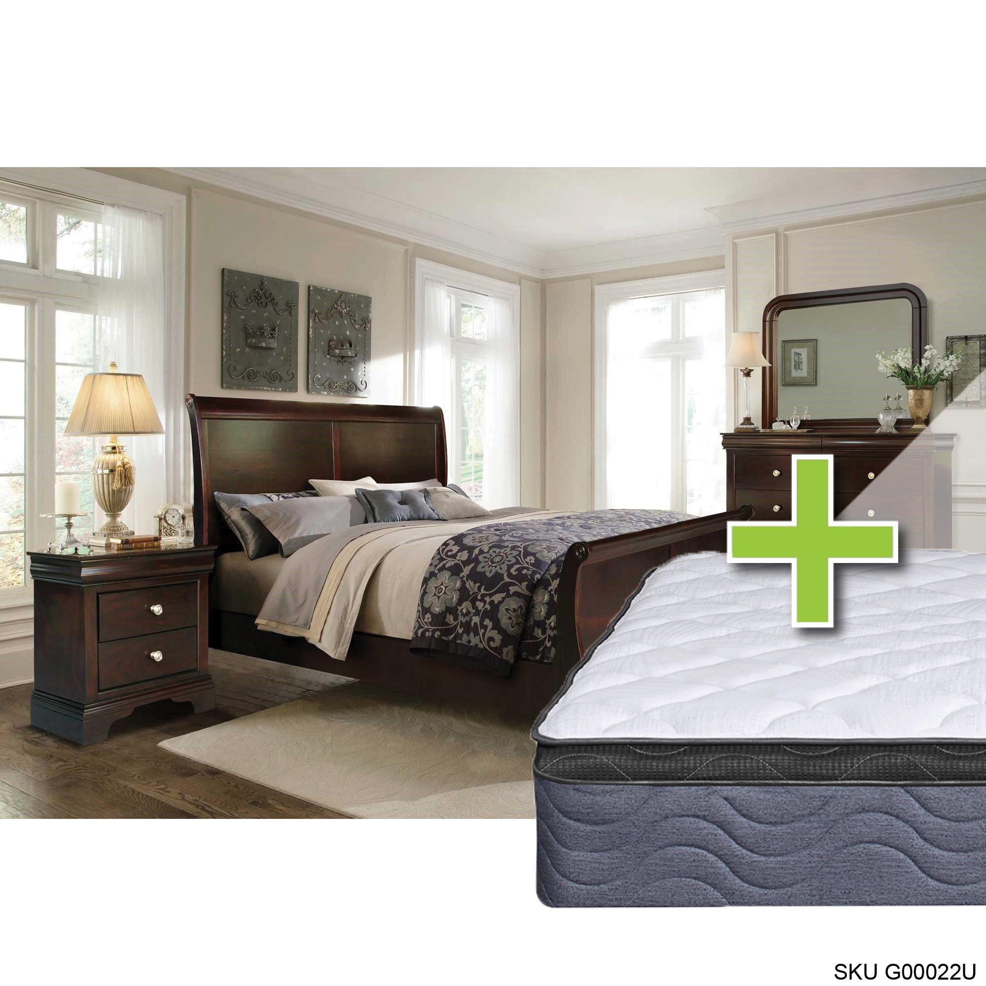 Link: Queen Dominique Bed w/9.5" Pillow Top Med. Plush Mattress & Dresser, Mirror, Nightstand